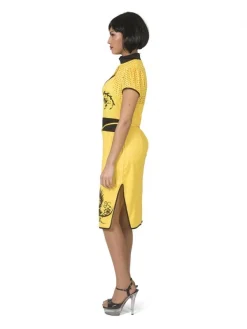 Incarnez une élégante chinoise avec cette robe pour femme jaune et noir.