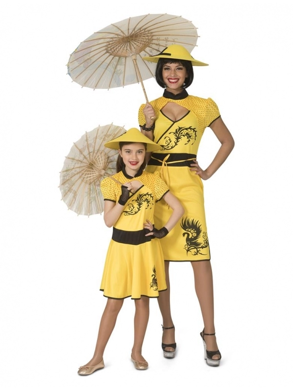 Si vous sortez en couple ou en famille à votre soirée à thème chinois ou peuple du monde, ce déguisement chinois noir et jaune existe en version masculine pour homme et garçon et en version féminine pour fillette.