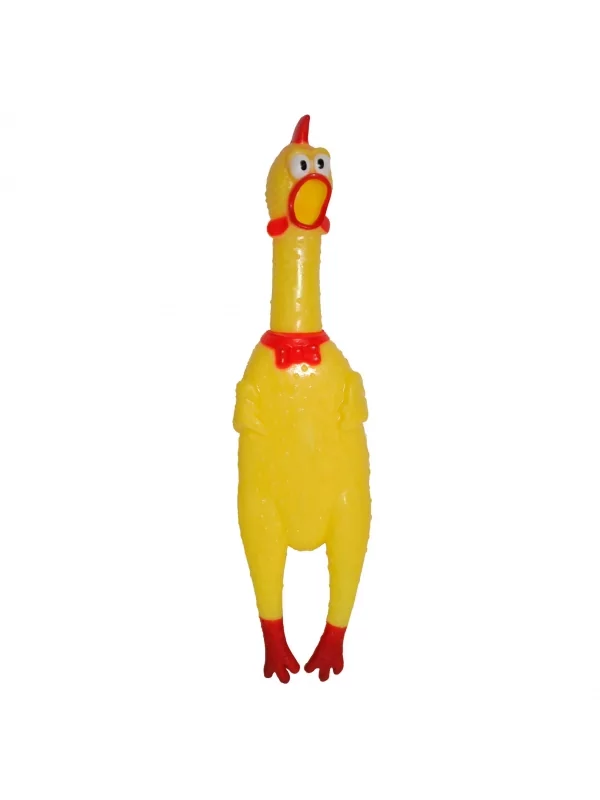 Ajoutez une touche d’humour à votre soirée avec ce poulet déplumé sonore en plastique jaune !