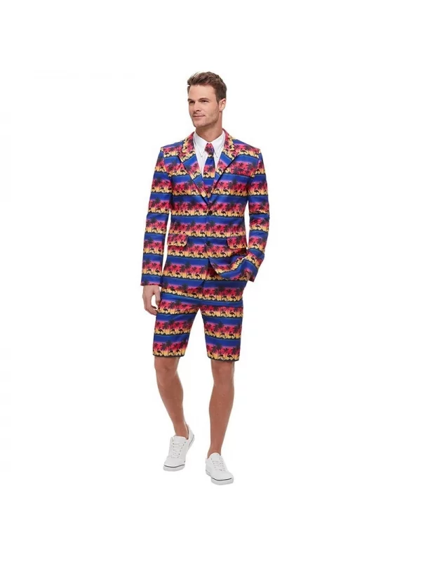 Avec sa veste et son short aux motifs humoristiques et colorés, ce costume imprimé flamand rose bleu ne passera pas inaperçu. Vous pourrez également compléter votre tenue avec la cravate assortie pour un look complet et réussi.