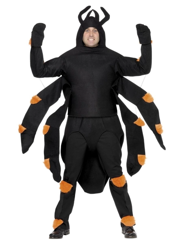 Costumez-vous en araignée velue le temps d’une journée. Cette tenue est dans les tons noir et orange. Nous vous livrons l’ensemble avec un haut noir (pattes), une capuche noire (forme de tête d’araignée), un abdomen noir (trou pour les jambes), un short noir (tâches orange) et des tours de chevilles orange.