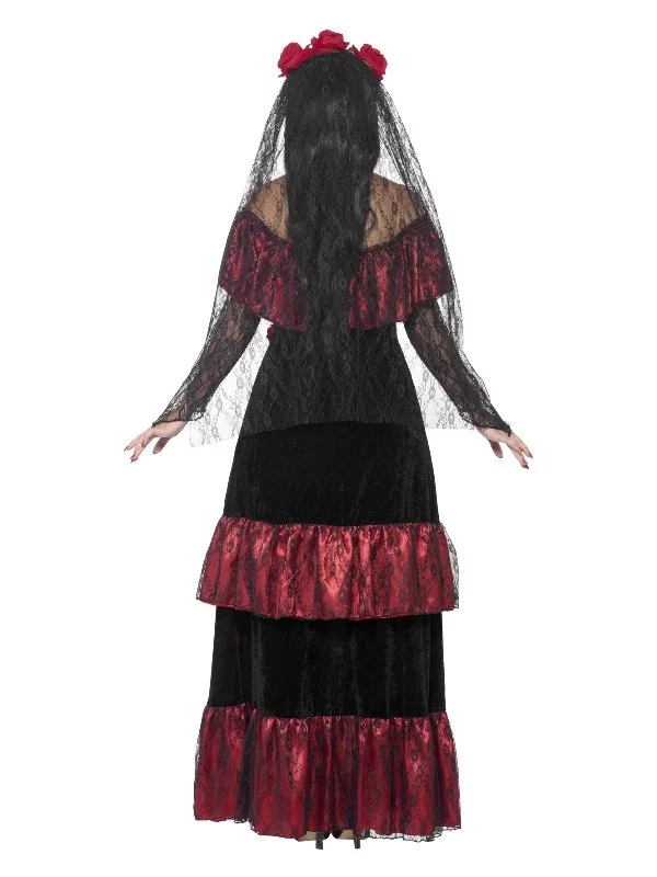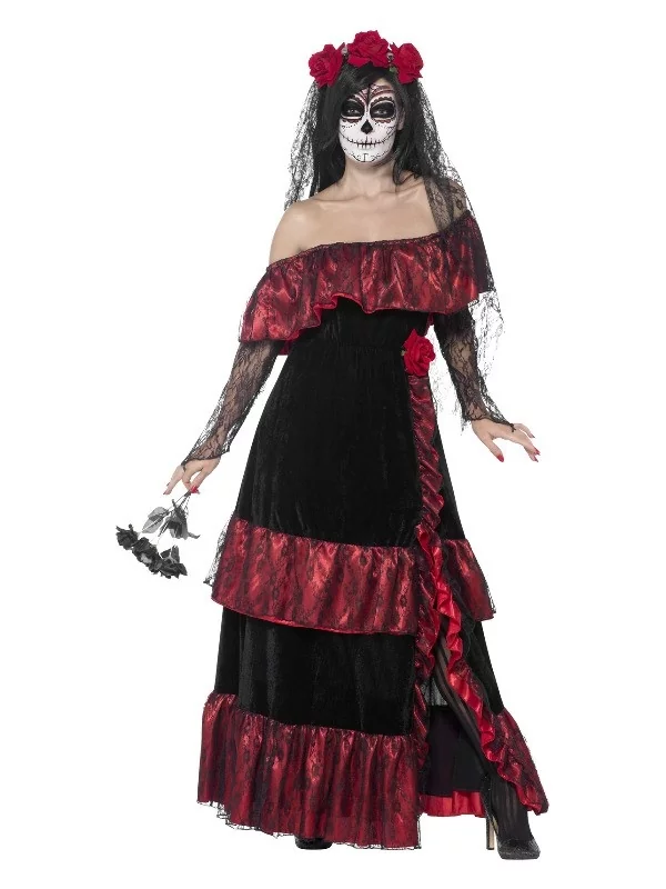 Mesdames, pour votre prochaine fête d’Halloween, démarquez-vous avec ce déguisement de mariée du jour des morts femme en rouge et noir. Chez Déguiz-fêtes.fr, nous vous proposons une tenue de qualité, qui vous permettra de briller lors de vos festivités.