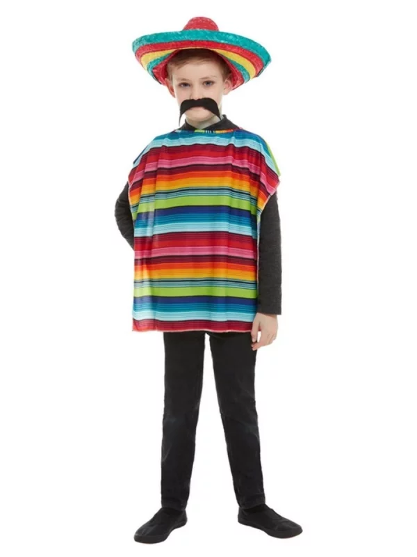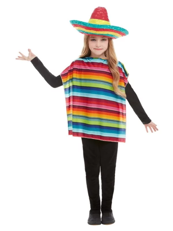 Ce déguisement mexicain est parfait pour les thèmes Western, Conquête de l’Ouest, Carnaval ou Mexique. Les couleurs traditionnelles et les motifs du poncho et du sombrero rendent ce kit authentique et parfait pour une fête réussie.