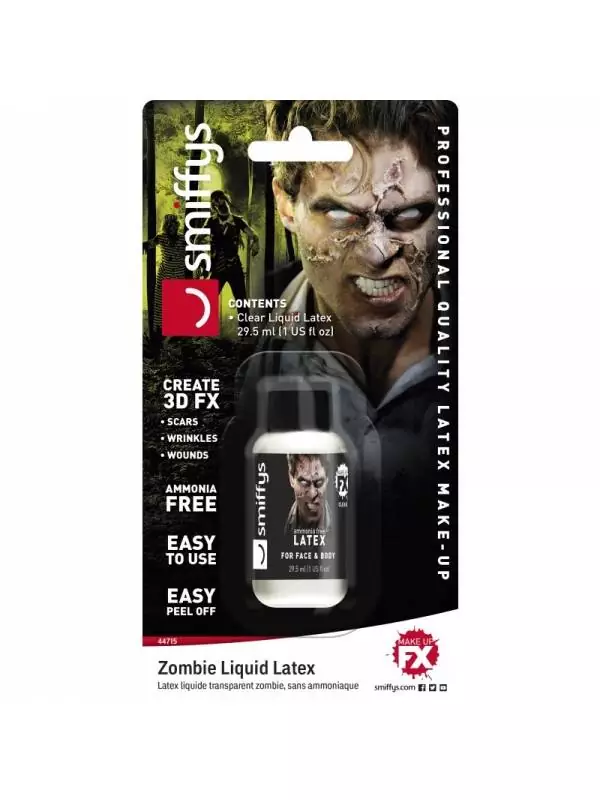Pour la prochaine Halloween, vous avez décidé de vous déguiser en zombie ? Afin de vous aider à avoir un aspect plus réaliste, nous conseillons d’utiliser le latex liquide zombie sans ammoniaque 29,57 mL Femme rouge.