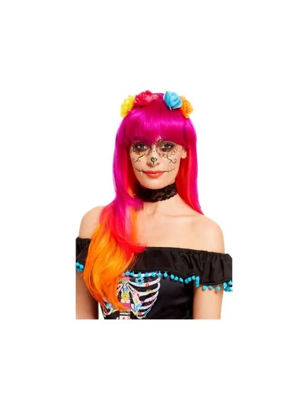 Si vous cherchez Ă ajouter une touche d’originalitĂ© Ă votre dĂ©guisement pour votre soirĂ©e d’Halloween ou pour Dia de los Muertos, ne cherchez pas plus loin que cette perruque rose et orange avec des fleurs pour femme. FabriquĂ©e Ă partir de matĂ©riaux 100% synthĂ©tiques, cette perruque est facile Ă porter et Ă entretenir.