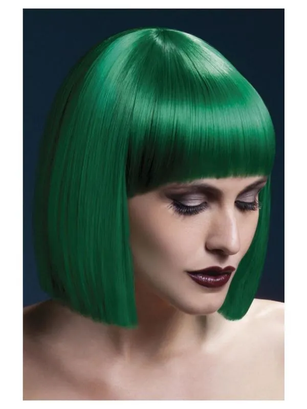 Changer de look avec la Perruque Fever Lola Verte, elle représente une coupe carré avec frange;
