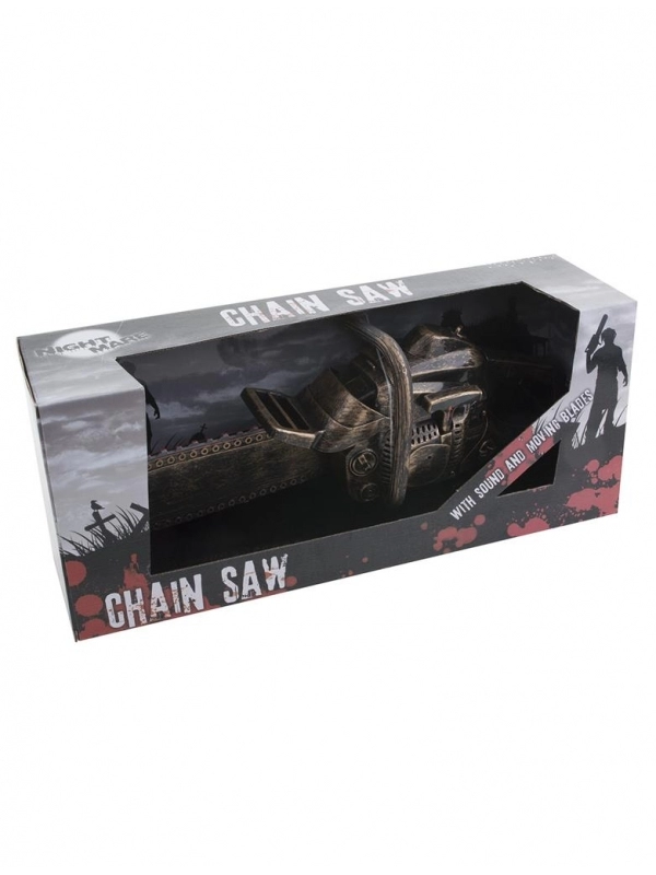 Fabriquée en PVC de haute qualité et de couleur bronze réaliste, cette tronçonneuse rappellera à tous le célèbre film Massacre à la tronçonneuse. Avec ses dimensions de 40 x 9 x 13 cm, elle est parfaitement adaptée aux adultes et est alimentée par 3 piles AA (non incluses).