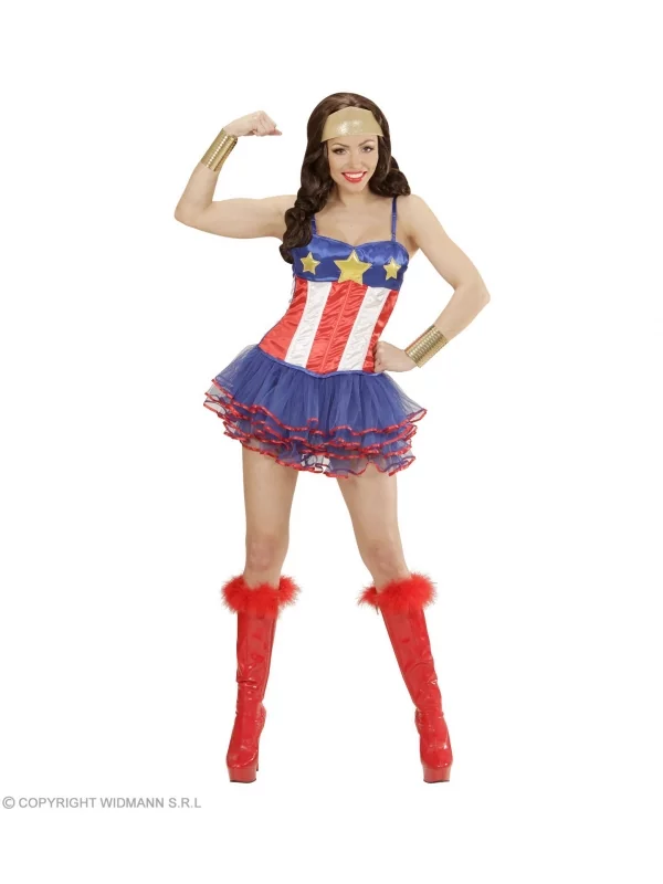 La panoplie est composée d’un débardeur au drapeau américain et d’une jupe tutu.