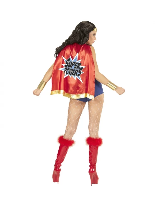 La robe moulante rouge et bleue de ce dĂ©guisement est ornĂ©e d’Ă©toiles dorĂ©es sur le devant du torse, ce qui lui confĂšre un look unique et personnalisĂ©. Vous pourrez Ă©galement assortir votre robe avec la ceinture et la coiffe dorĂ©es incluses dans le costume. Ces accessoires vous permettront de crĂ©er votre propre personnage de super-hĂ©roĂŻne et de vous dĂ©marquer des autres invitĂ©s de la soirĂ©e. La cape rouge, qui porte la mention « Super Powers » de maniĂšre bien visible, complĂštera parfaitement votre tenue de super-hĂ©roĂŻne.