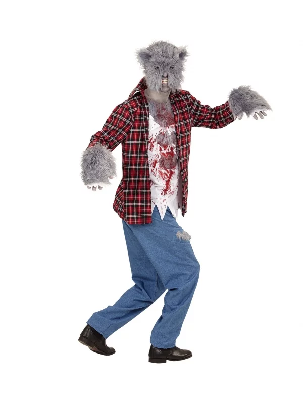 Le costume est constitué d’une chemise avec un T-shirt à l’intérieur pour simuler le buste. Un pantalon avec de fausses déchirures est livré avec la tenue. Enfin, des gants et un masque à fourrure au visage de loup viennent compléter l’ensemble.