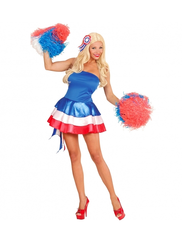La robe est un un bustier bleu qui vient épouser votre buste, le bas est une jupe à volants aux couleurs de notre beau drapeau. Ce déguisement comprend également une une pince à cheveux cocarde que vous poserez délicatement sur votre coiffure.