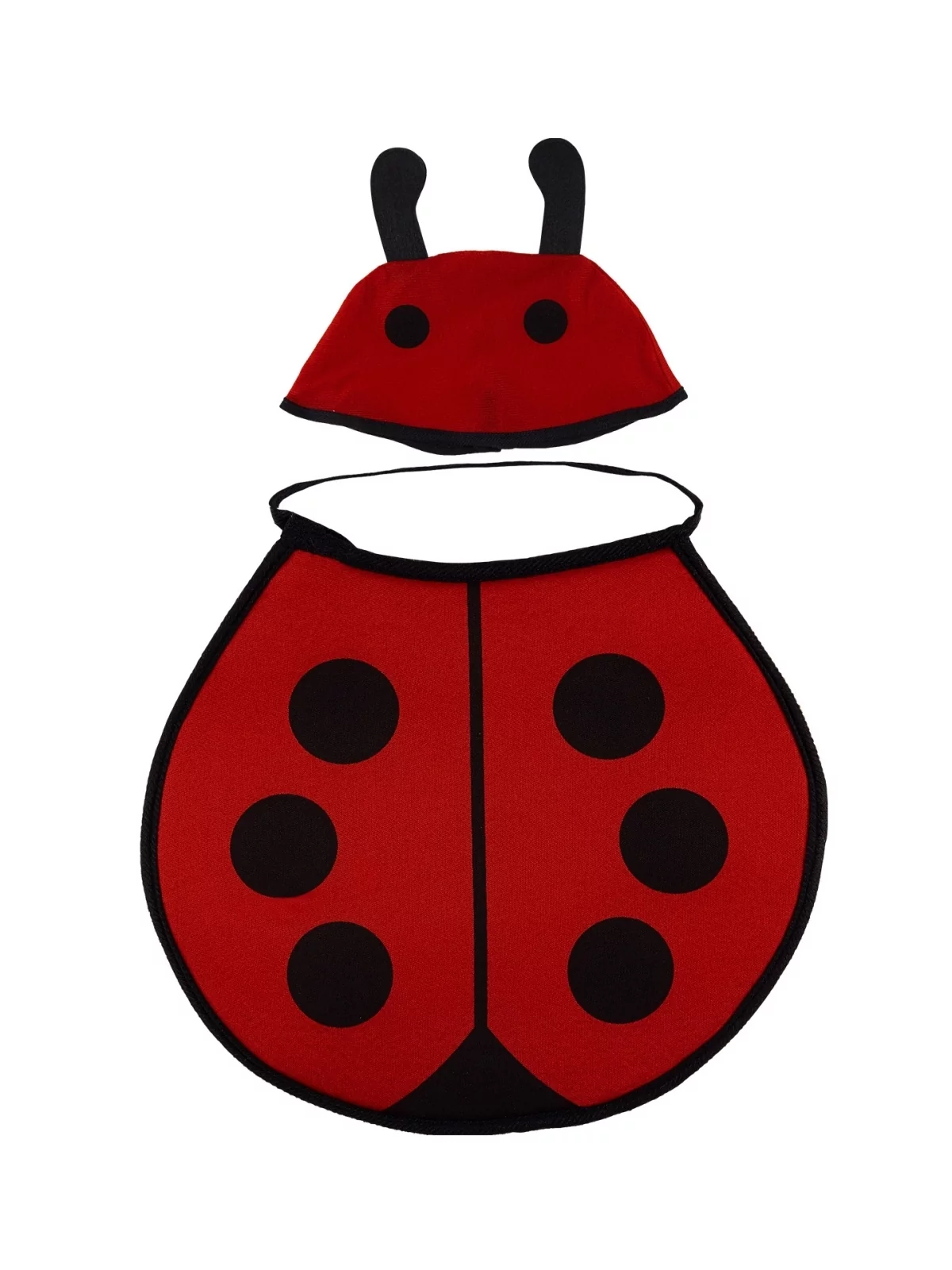 Aux couleurs des coccinelles , ce kit est rouge et noir et comprend un bavoir et un bonnet.